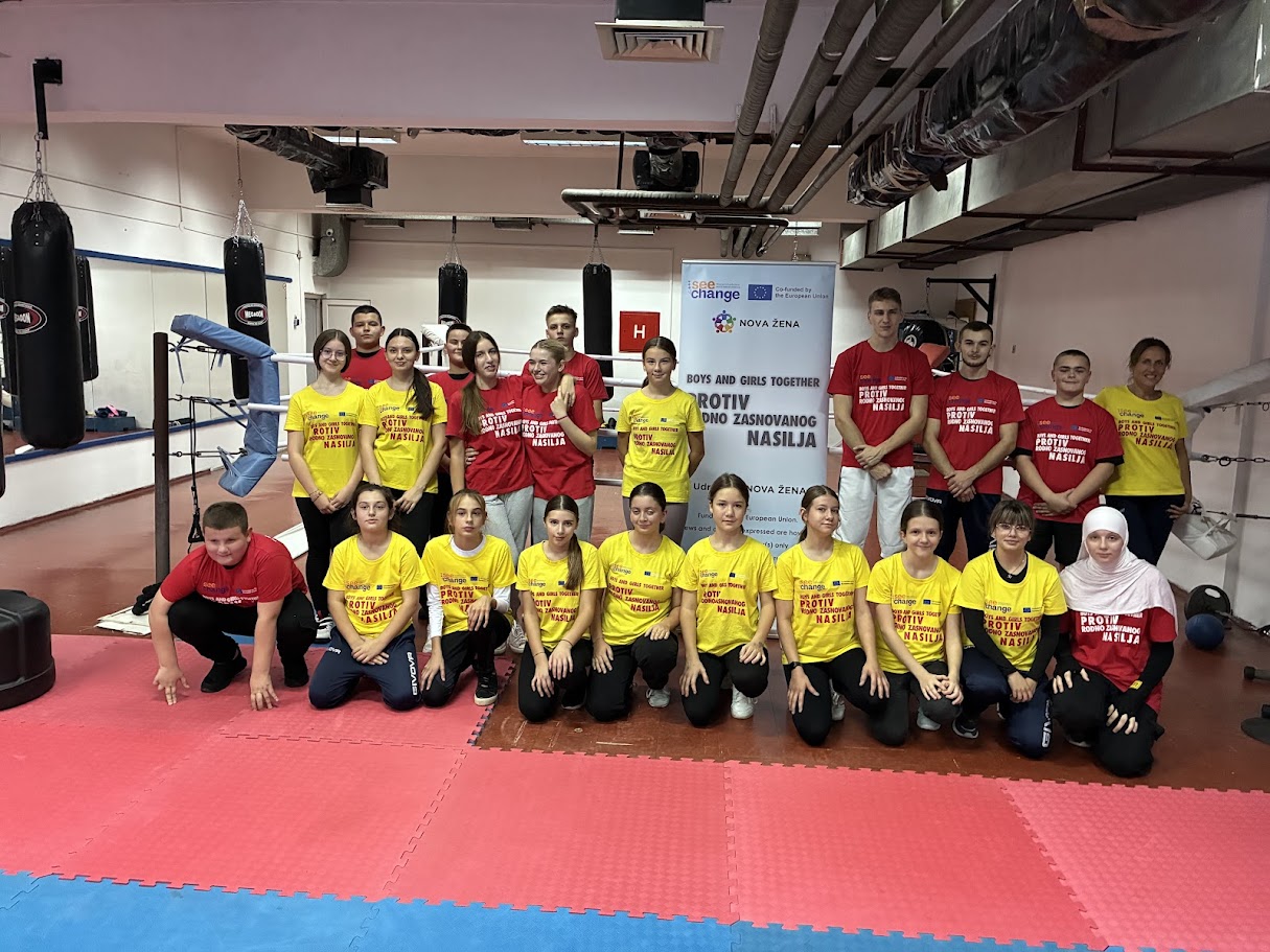 The project “Sport as a tool in prevention of gender-based violence” included a variety of activities aimed at teenagers from the municipalities of Vogošća and Ilijaš; workshops with a psychologist on violent/non-violent communication and gender roles in society, boxing training sessions with the application of peer-to-peer methodology, and many performances by our football team at tournaments and other cultural and sports events in the country and abroad. Over the course of two years, senior schoolchildren from elementary schools in Semizovac and Ilijaš, boys from Football club Vogošća, and boxers from Boxing Club Vogošća participated in the project activities. The Mediterranean Women's Fund, which has believed in us and supported us since 2016, has enabled us to achieve such great results.